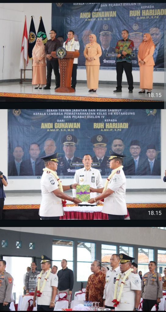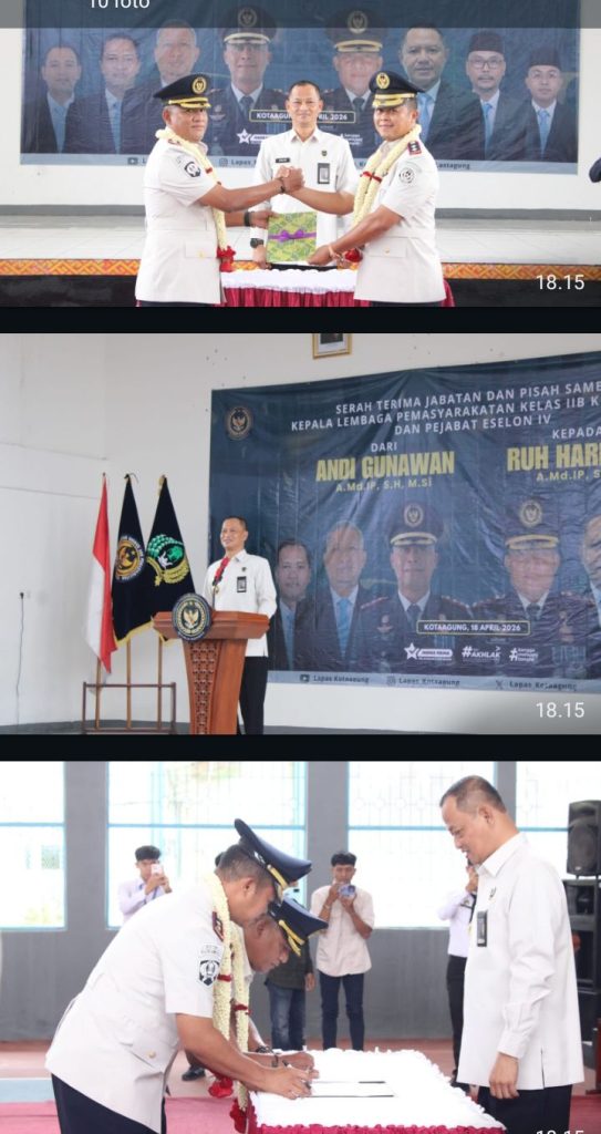 INFO LASTAGUNG — Alih kepemimpinan di Lembaga Pemasyarakatan (Lapas) Kelas IIB Kotaagung berlangsung dengan nuansa khidmat dalam rangkaian acara Serah Terima Jabatan dan Pisah Sambut Kepala Lapas serta Pejabat Eselon IV, Sabtu (18/4/2026). Kegiatan ini menandai peralihan jabatan dari Andi Gunawan kepada Ruh Harijadi sebagai Kepala Lapas yang baru, sekaligus menjadi momentum penguatan arah kebijakan yang berfokus pada integritas, profesionalitas, dan peningkatan kualitas pembinaan di lingkungan pemasyarakatan.